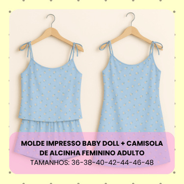 MOLDE PARA BABY DOLL + CAMISOLA DE ALCINHA FEMININO ADULTO