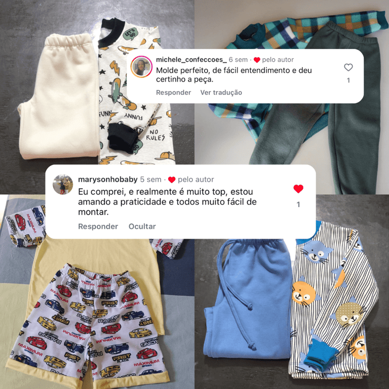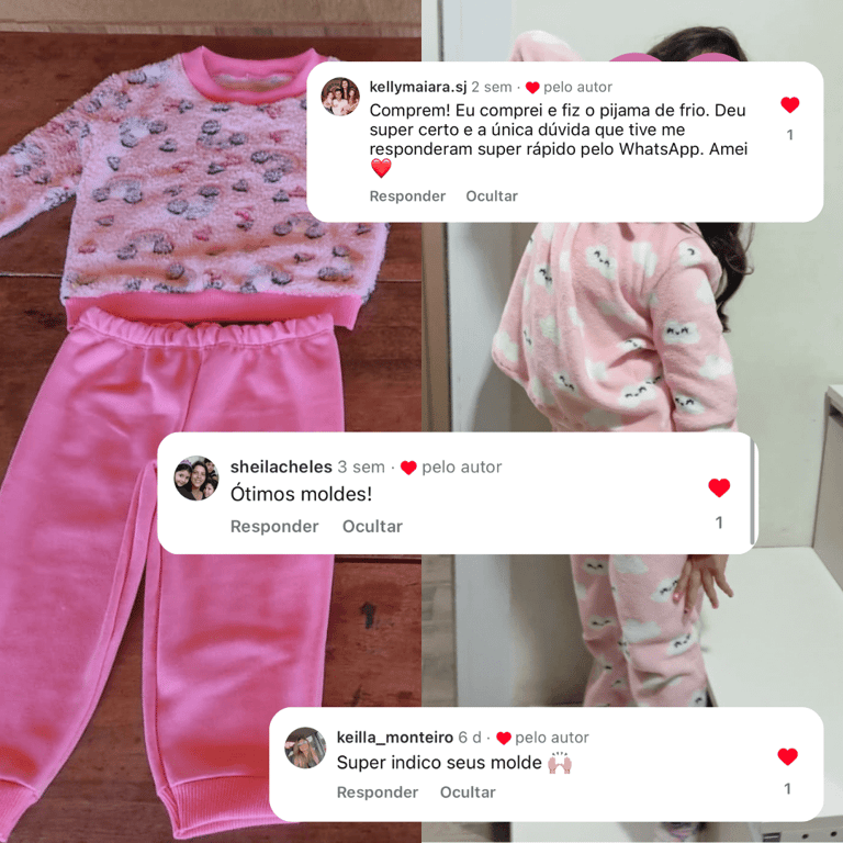 PRODUÇÃO SIMPLES E ESCALÁVEL: As modelagens de pijamas e moletons são práticas de costurar, o que permite iniciar com poucos recursos e aumentar a produção conforme as vendas crescem.