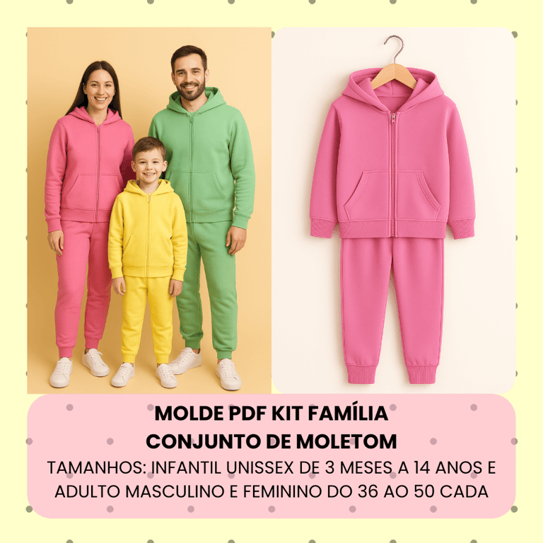 MOLDES PRONTOS PARA CONFECÇÃO DE PIJAMAS E MOLETONS PARA ADULTOS E CRIANÇAS