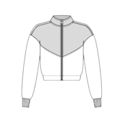 - Modelagem com várias opções de variações: o casaco pode ser feito com capuz ou gola de ribana, aberto na frente com zíper ou fechado. A calça possui bolsos laterais embutidos, cós de elástico e punhos ajustados de ribana;
